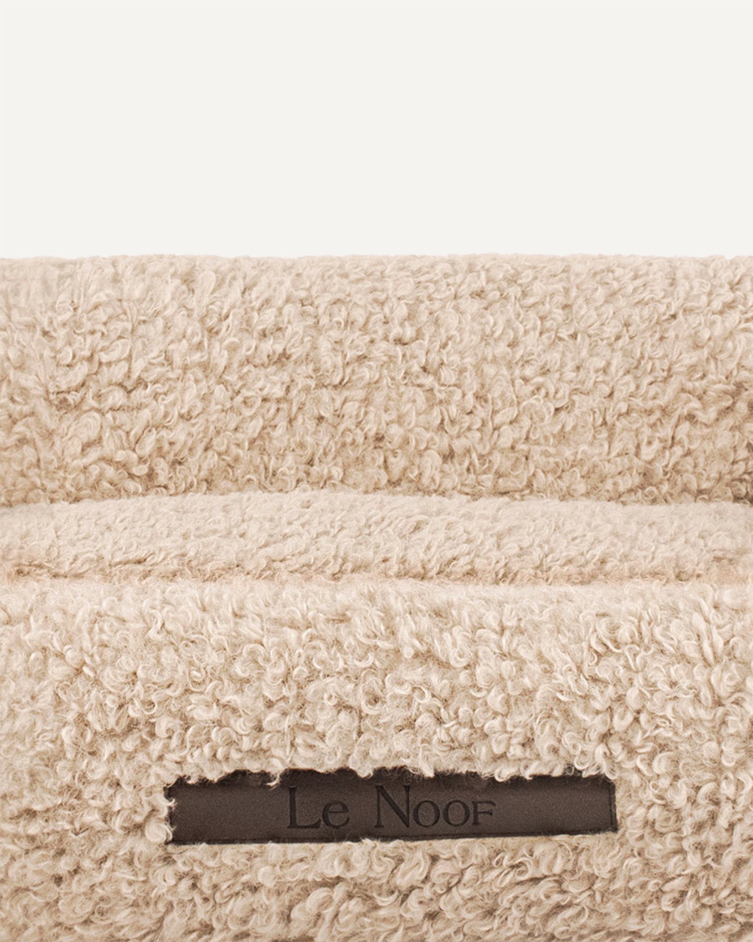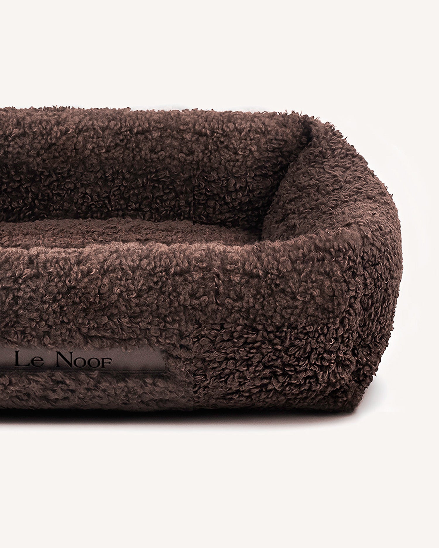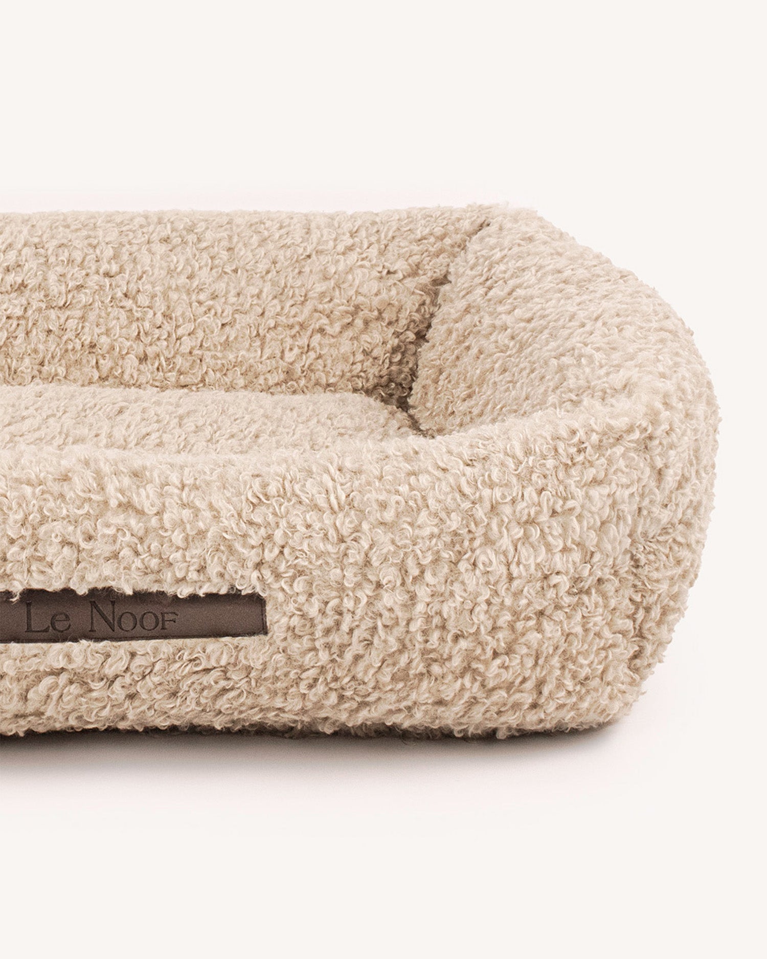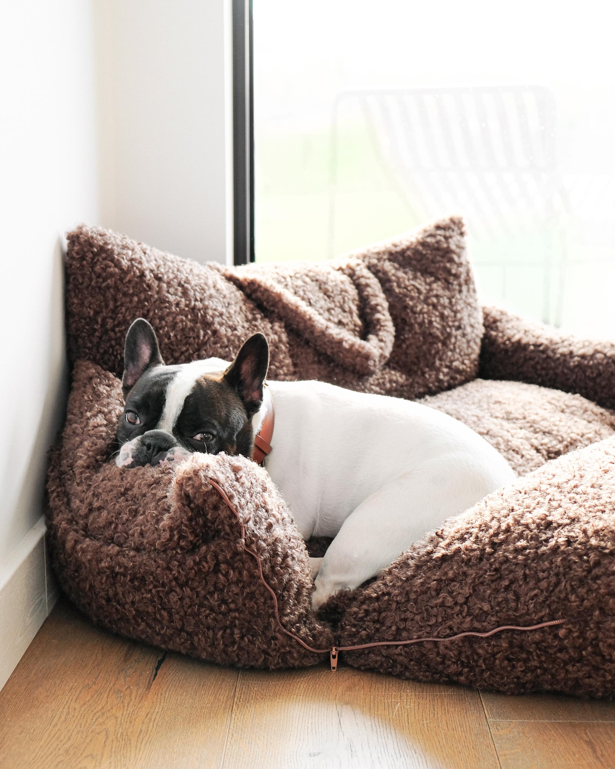 The bed is super soft and cozy, with a thick, curly texture that somehow manages to look stylish while also being the most inviting thing in the house. The sides are sturdy enough for him to lean into and the whole thing just seems to hug him perfectly.