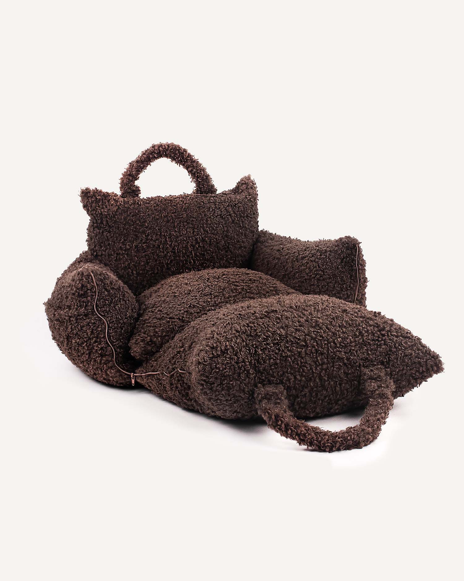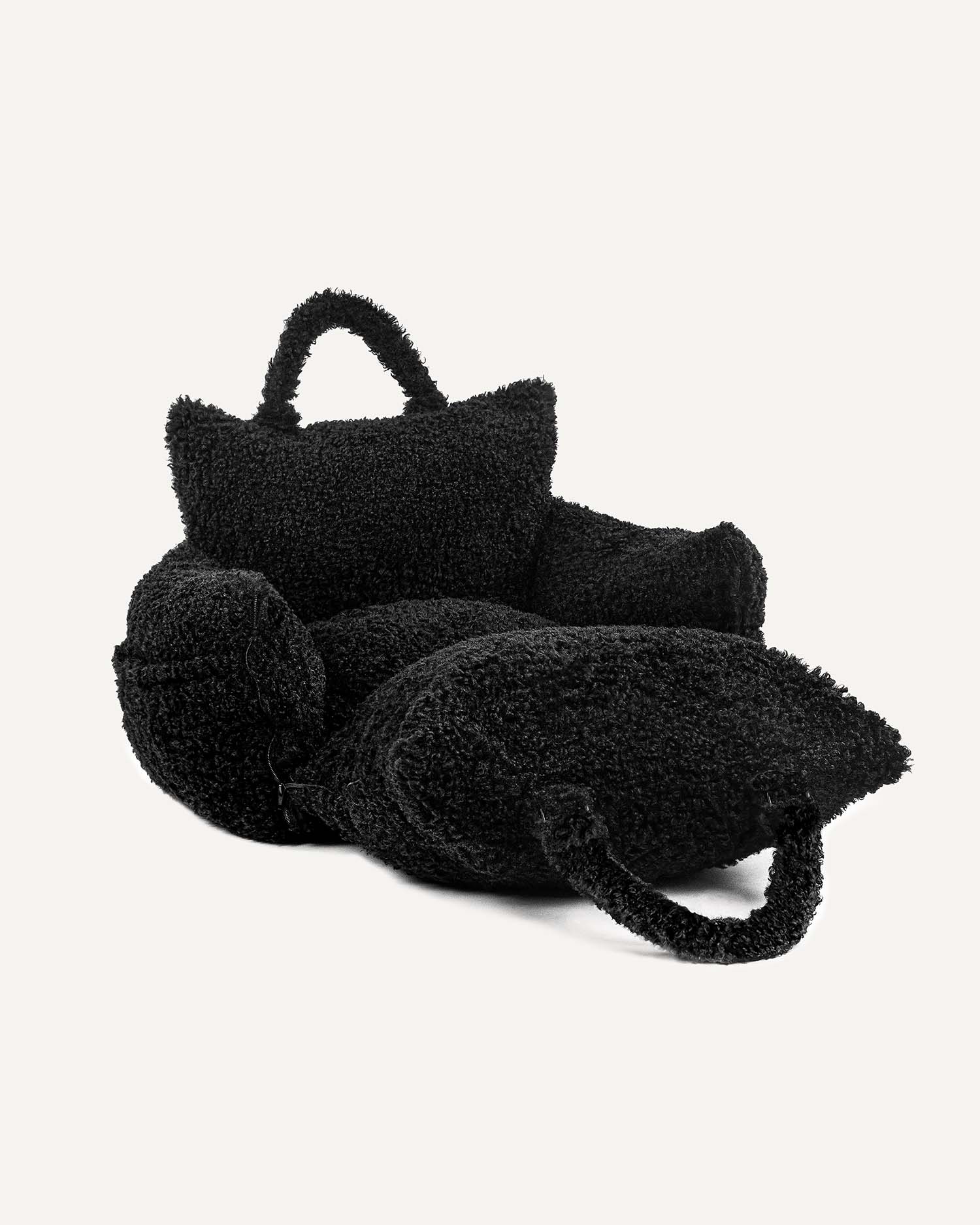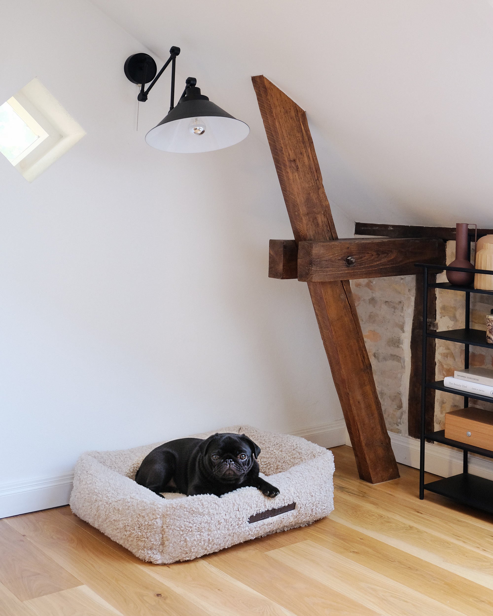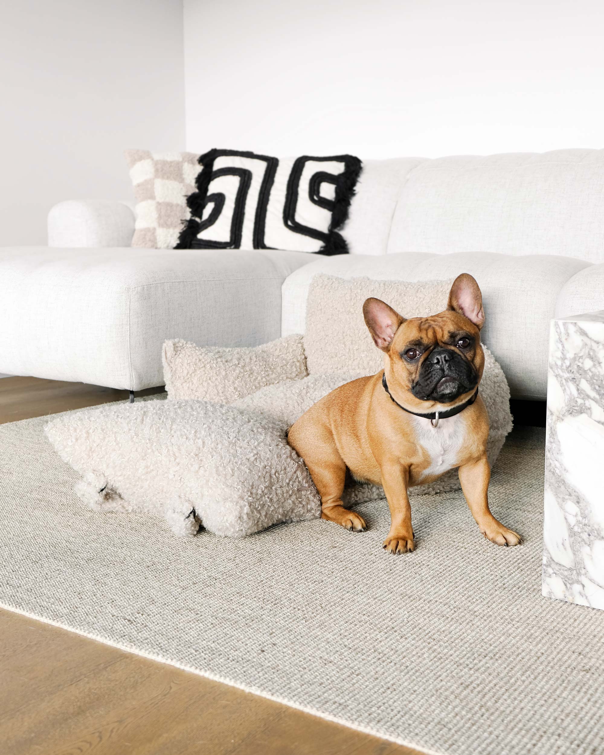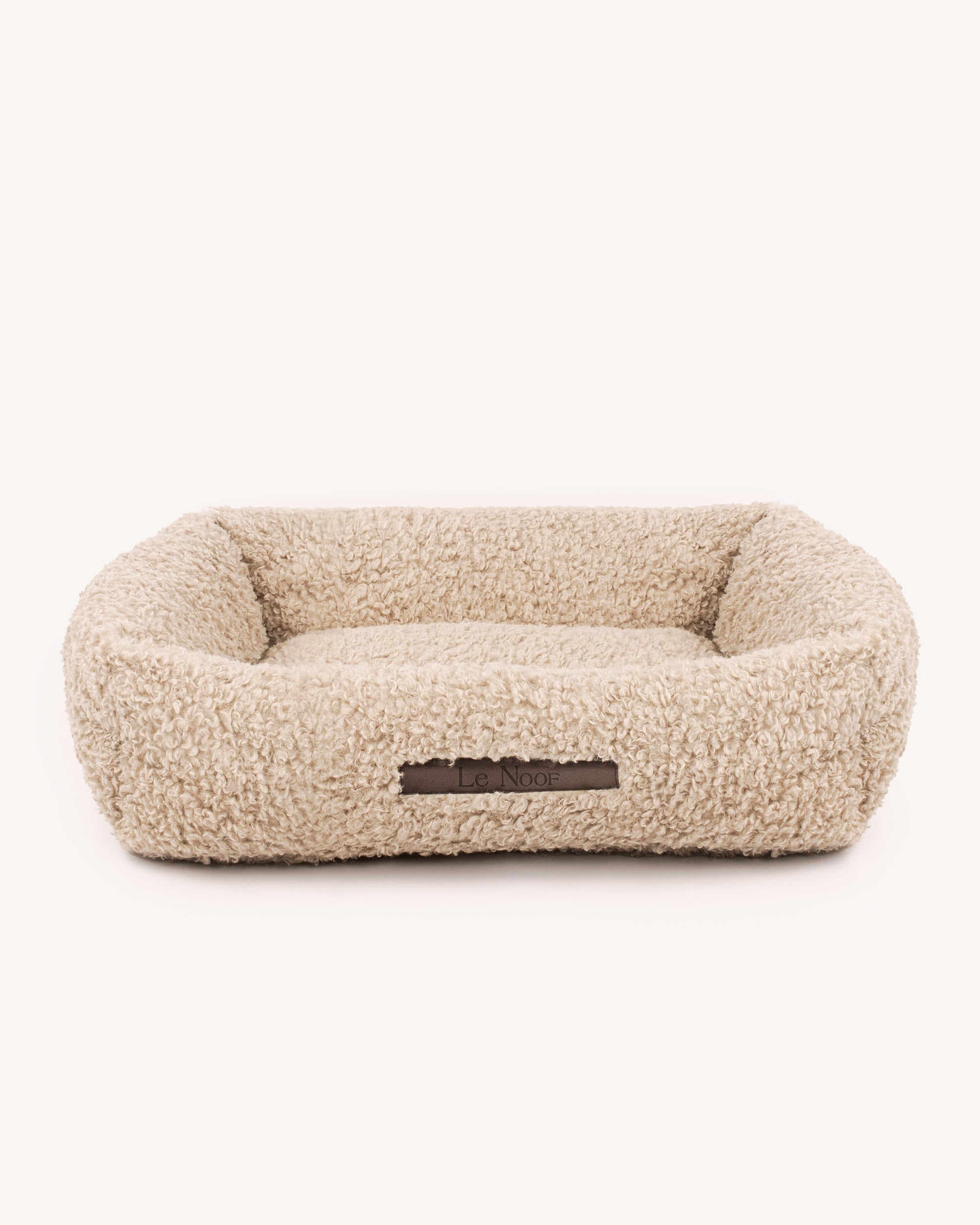 The bed is super soft and cozy, with a thick, curly texture that somehow manages to look stylish while also being the most inviting thing in the house. The sides are sturdy enough for him to lean into and the whole thing just seems to hug him perfectly.