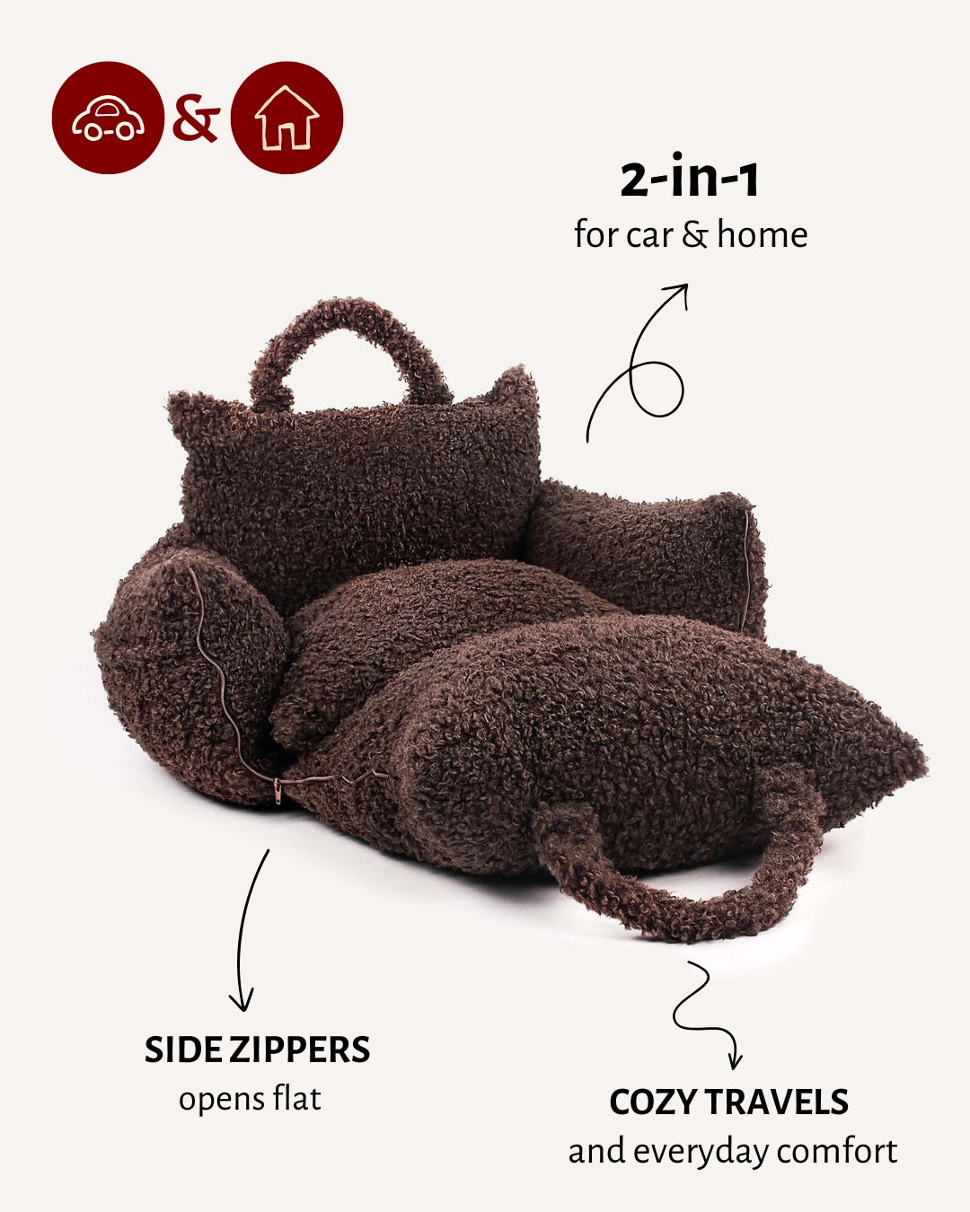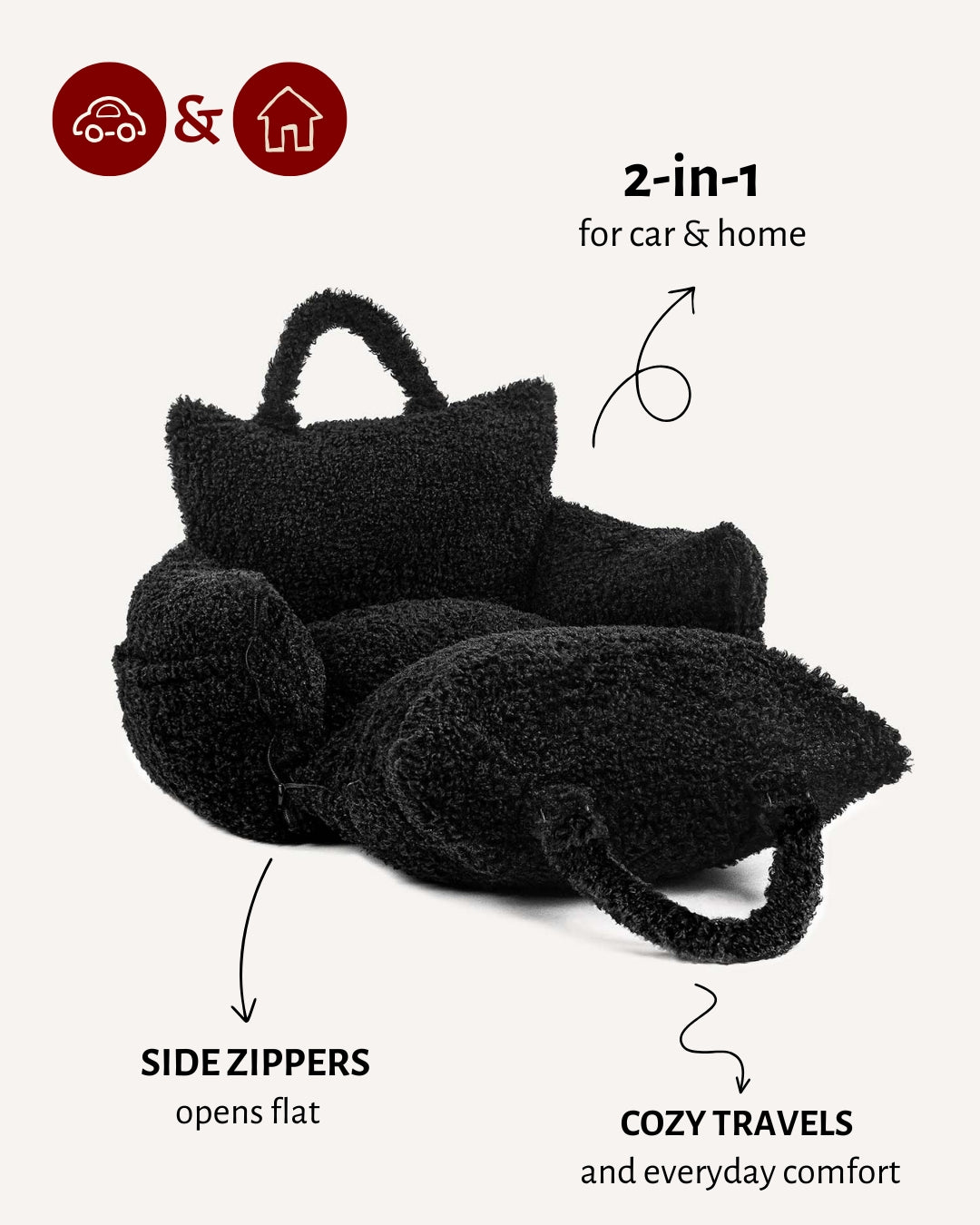 Black Teddy Travel Car Dog Bed