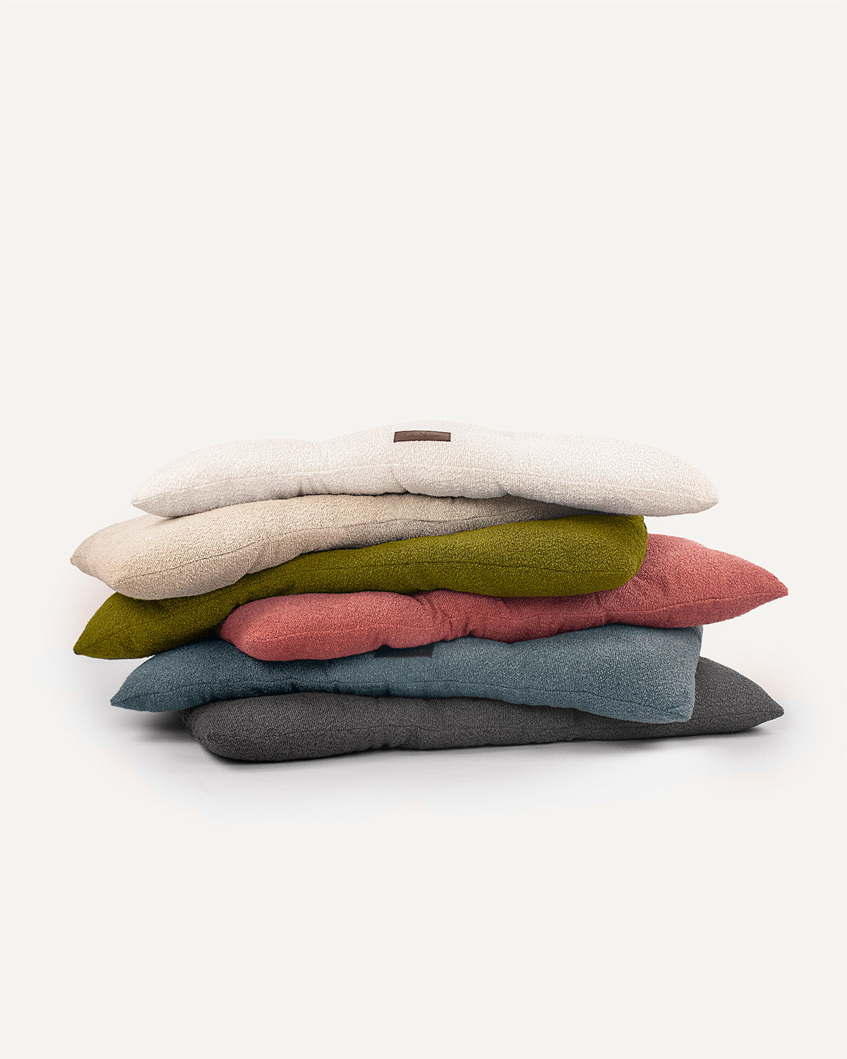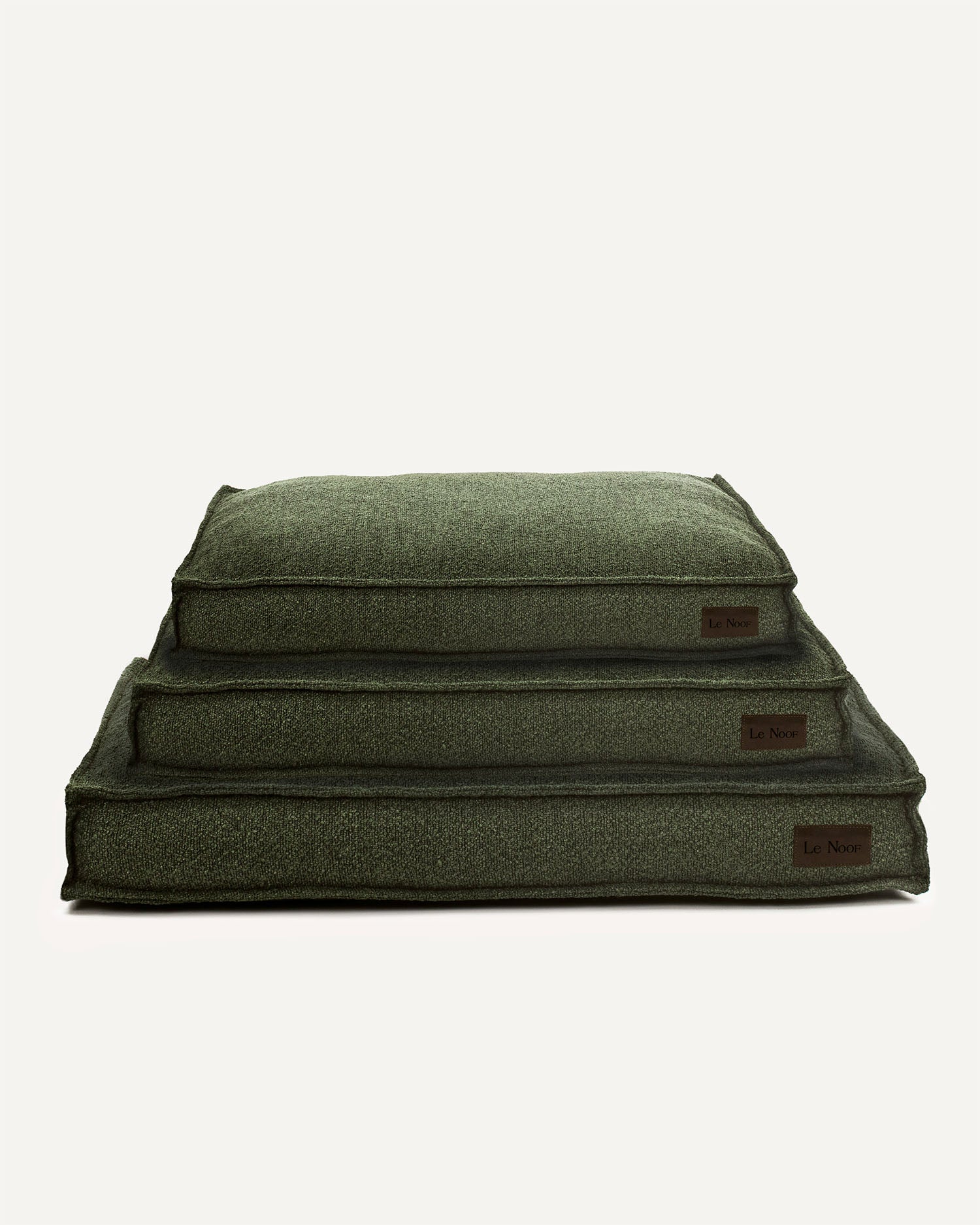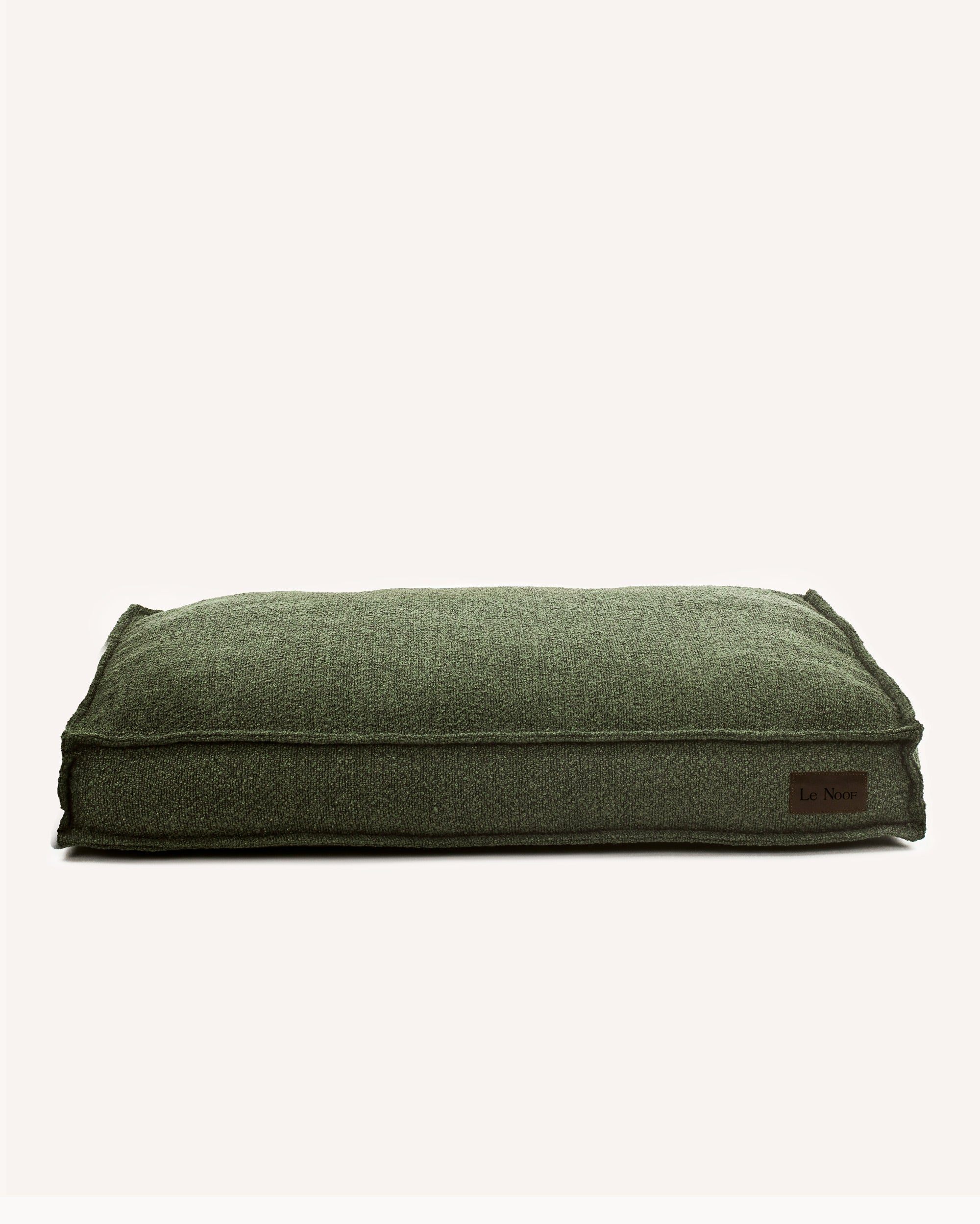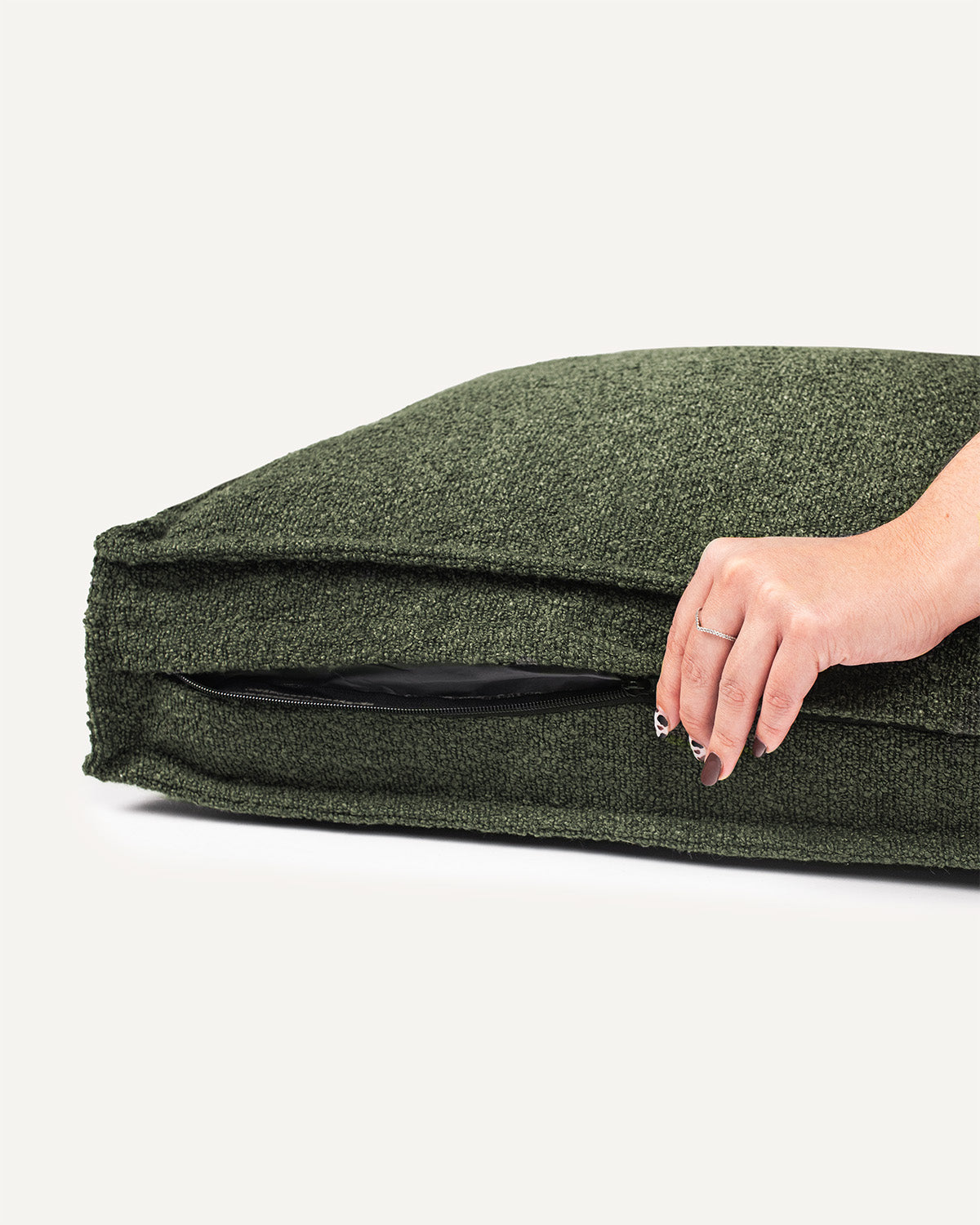 This dog pillow could easily pass as a regular decor cushion in my living room. The boucle fabric feels thick and the green color works perfectly with our living room. Our spaniel stretches out on it every evening and it has not gone flat. It is nice to finally have a dog bed that does not ruin the room.