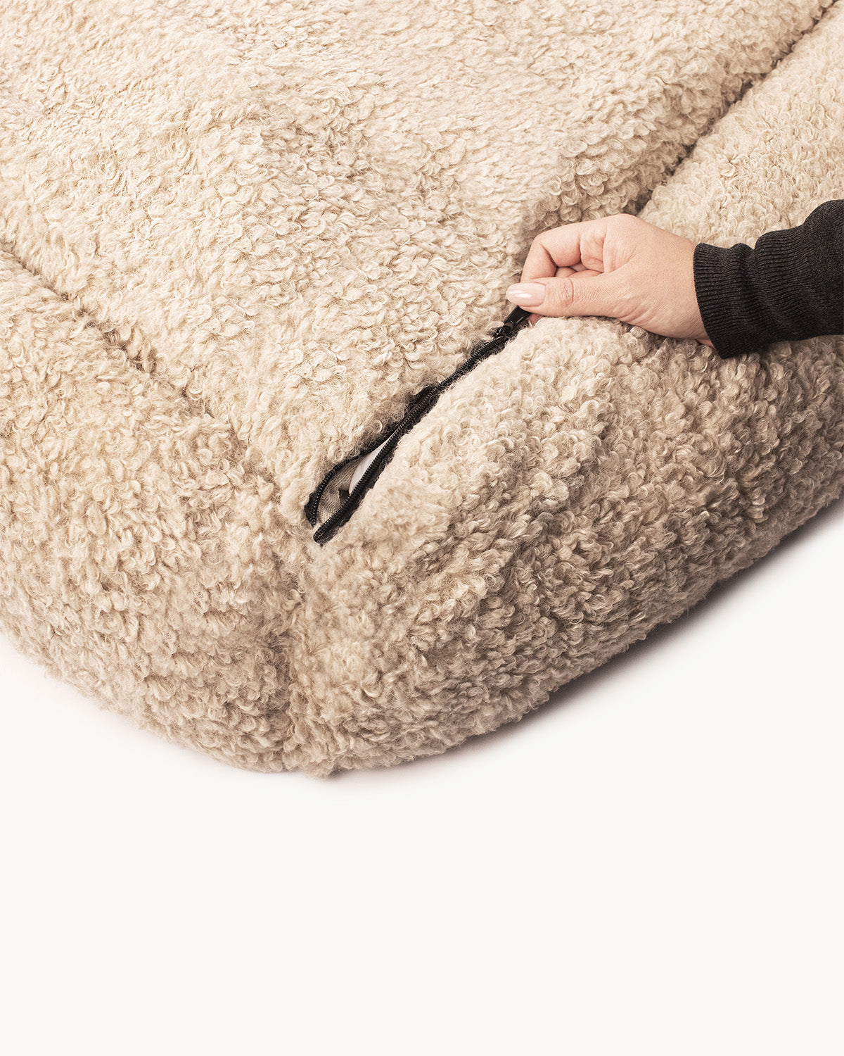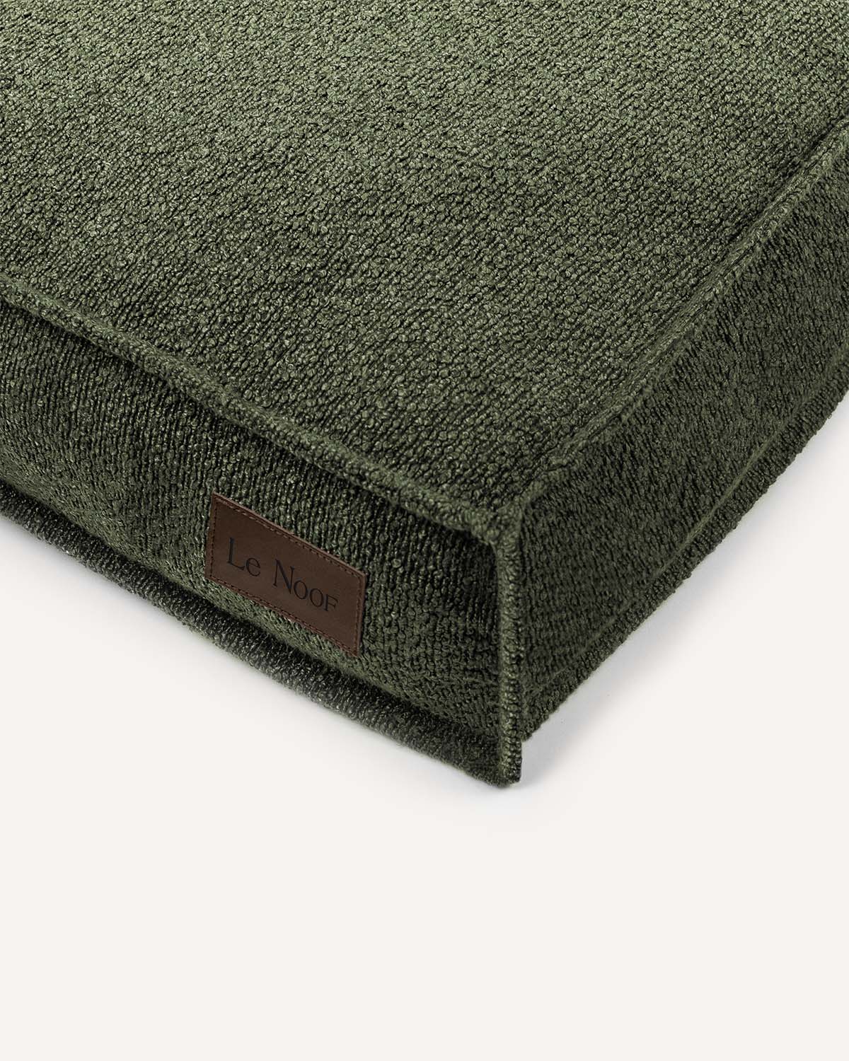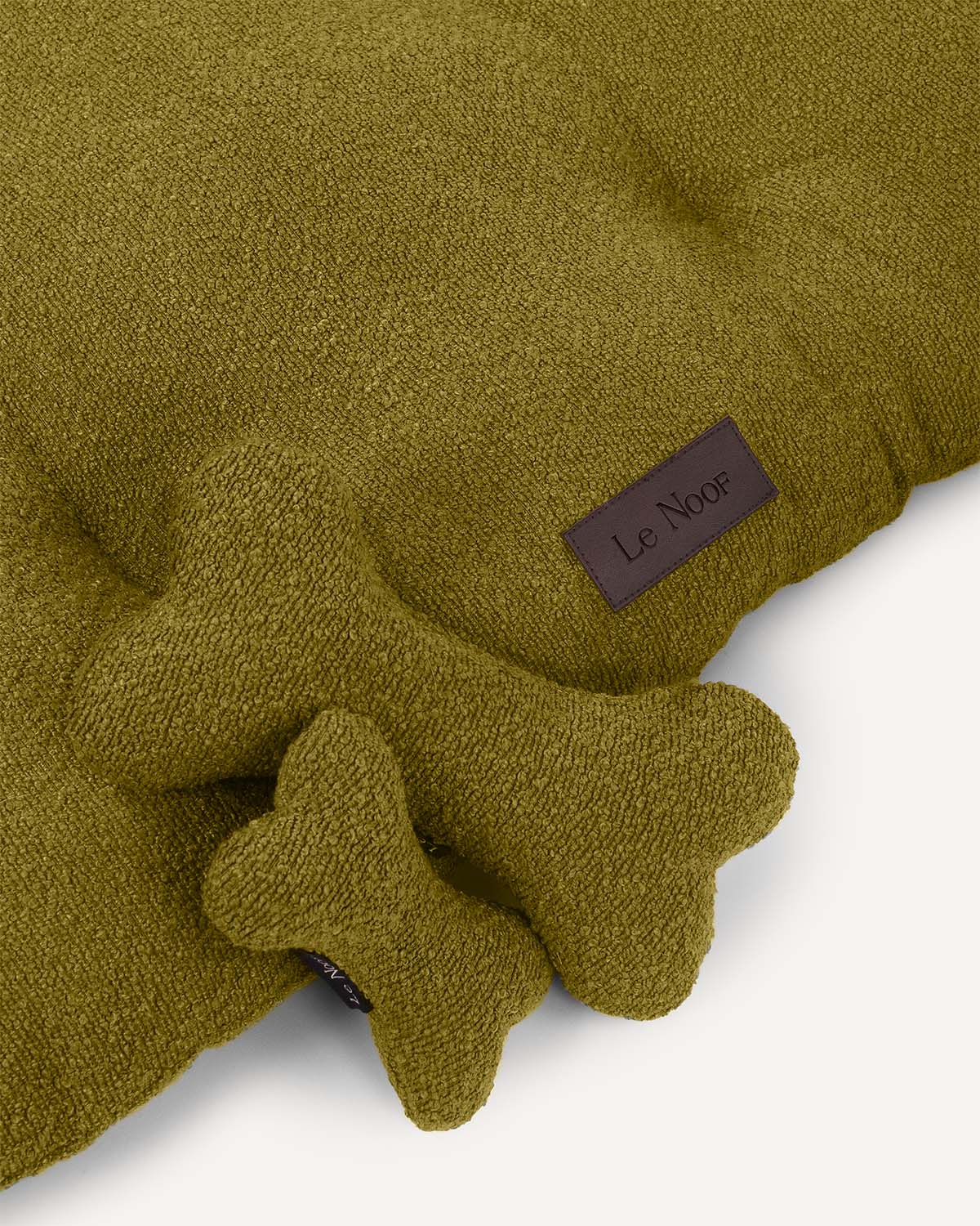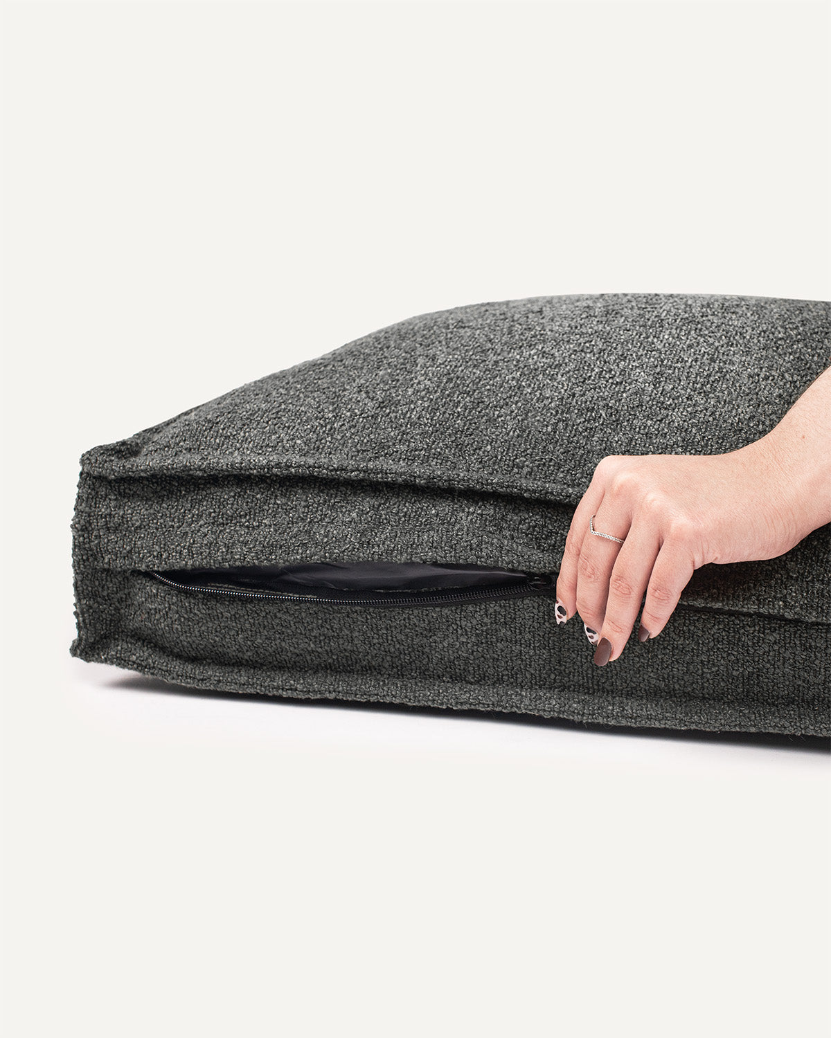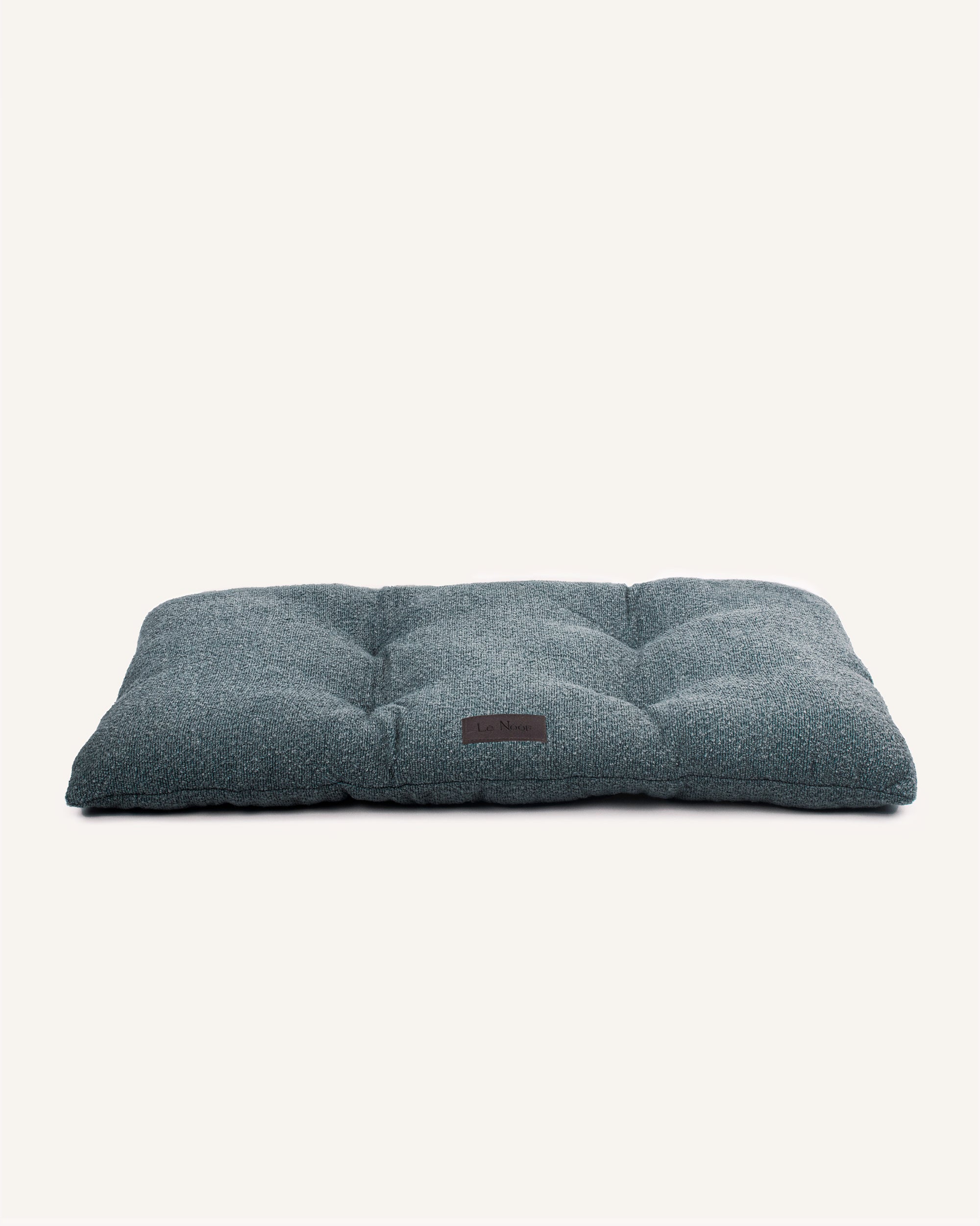 This dog pillow could easily pass as a regular decor cushion in my living room. The boucle fabric feels thick and the green color works perfectly with our living room. Our spaniel stretches out on it every evening and it has not gone flat. It is nice to finally have a dog bed that does not ruin the room.