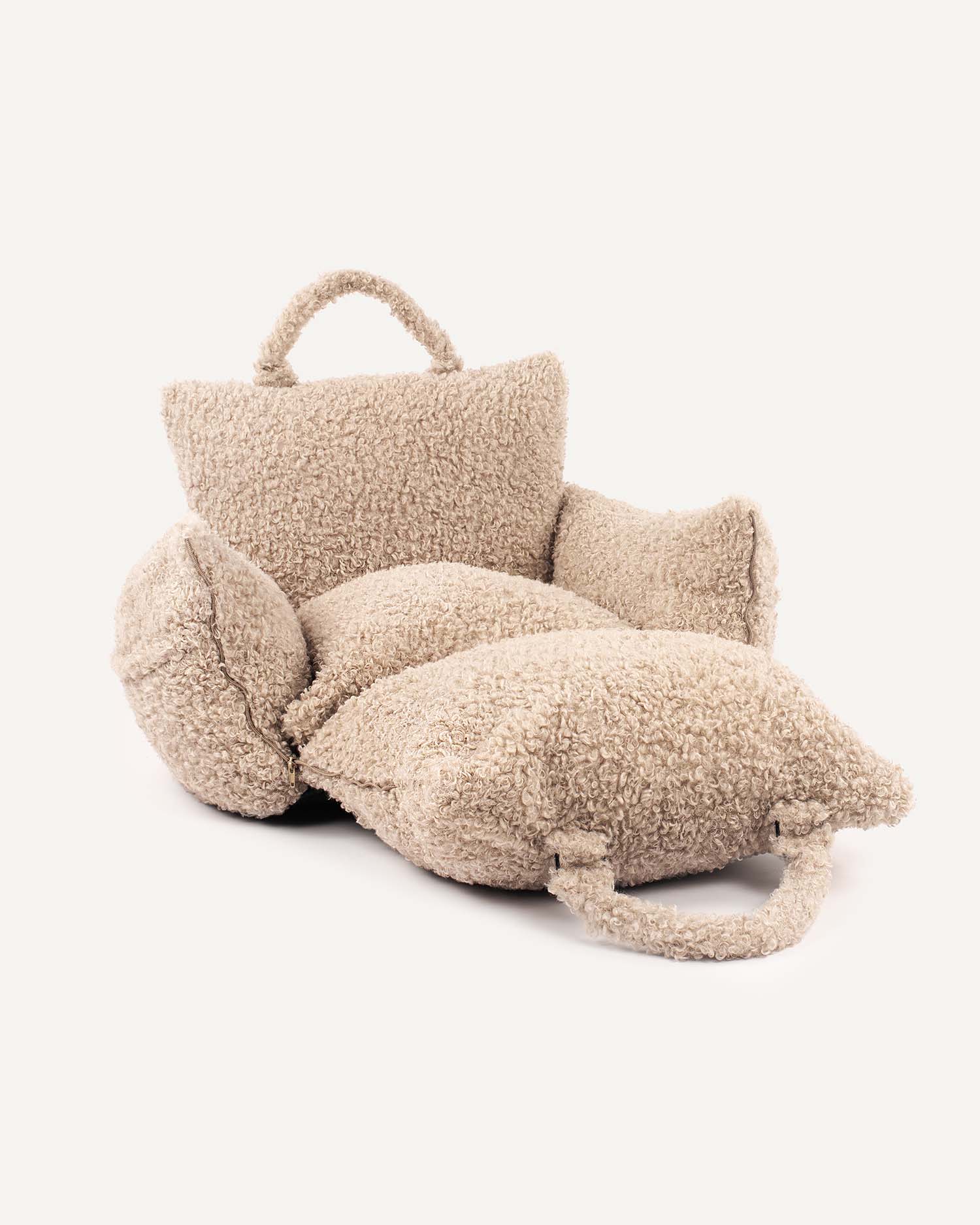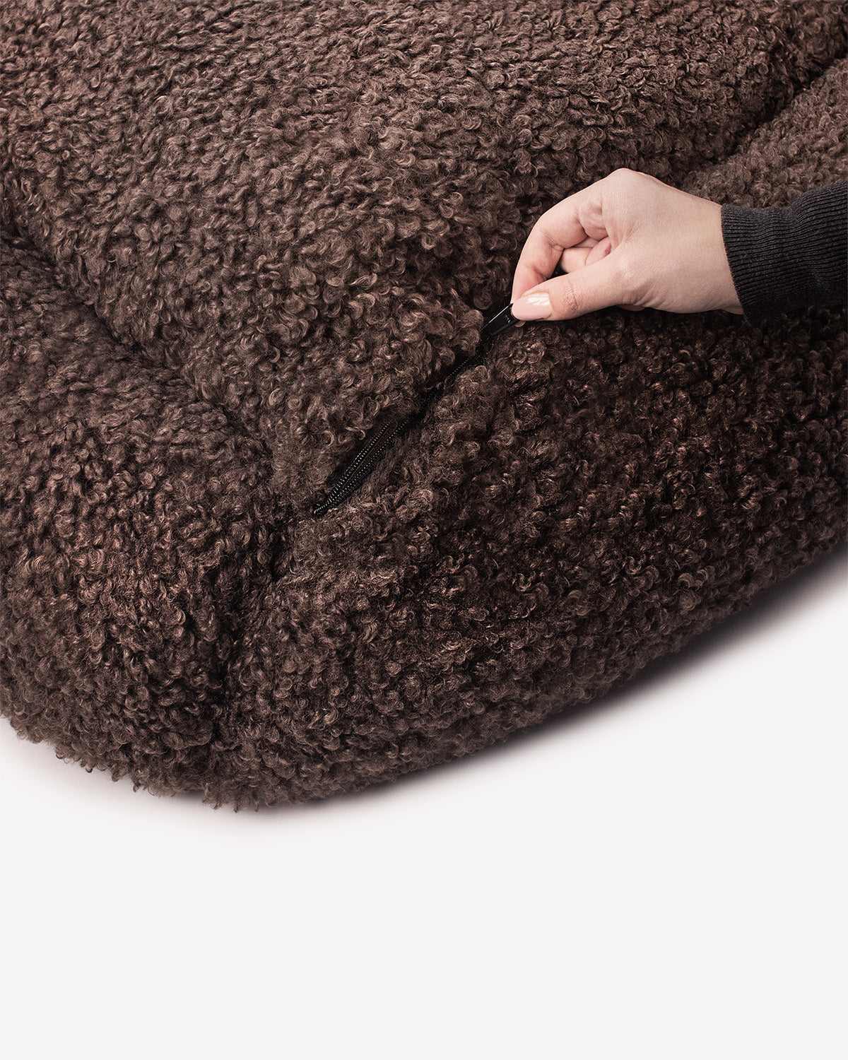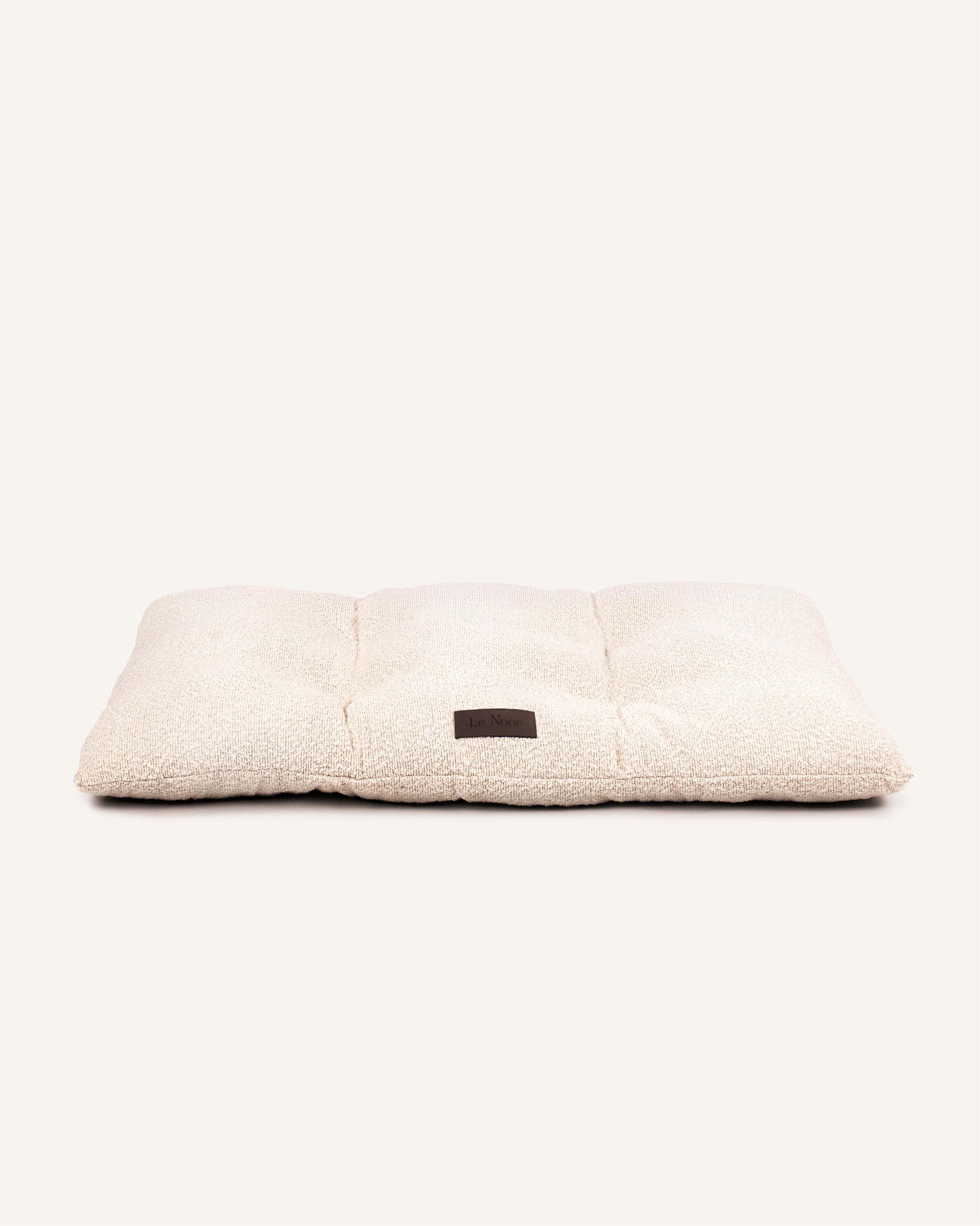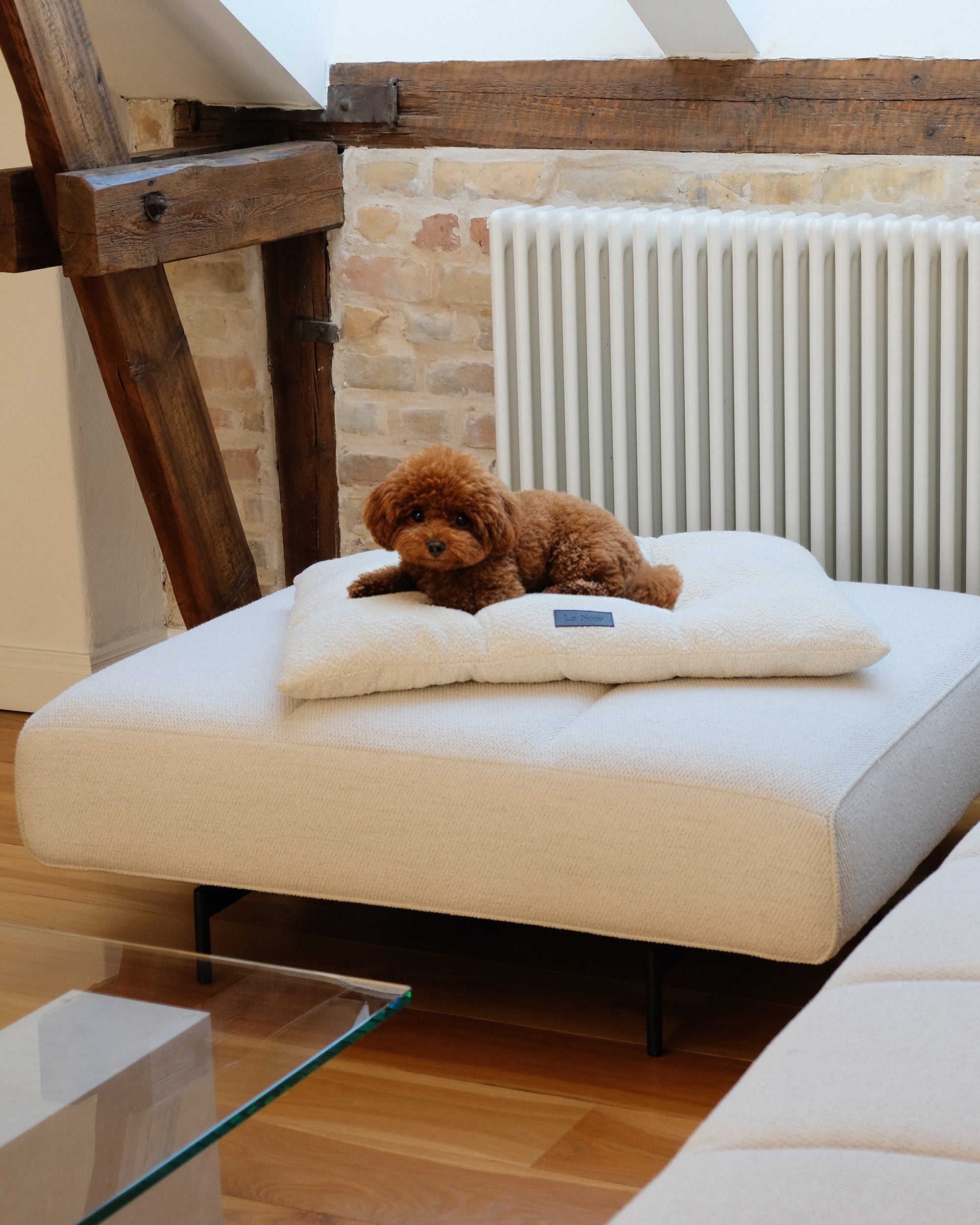 This dog pillow could easily pass as a regular decor cushion in my living room. The boucle fabric feels thick and the green color works perfectly with our living room. Our spaniel stretches out on it every evening and it has not gone flat. It is nice to finally have a dog bed that does not ruin the room.