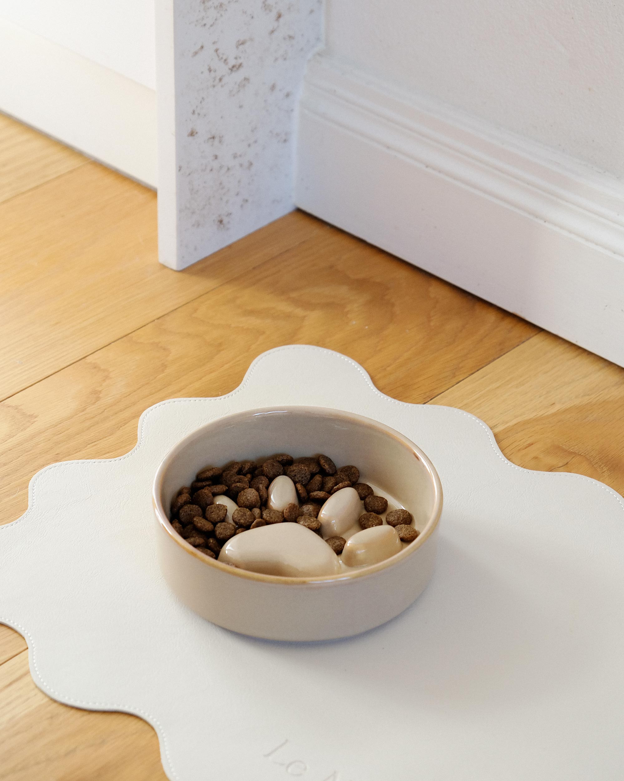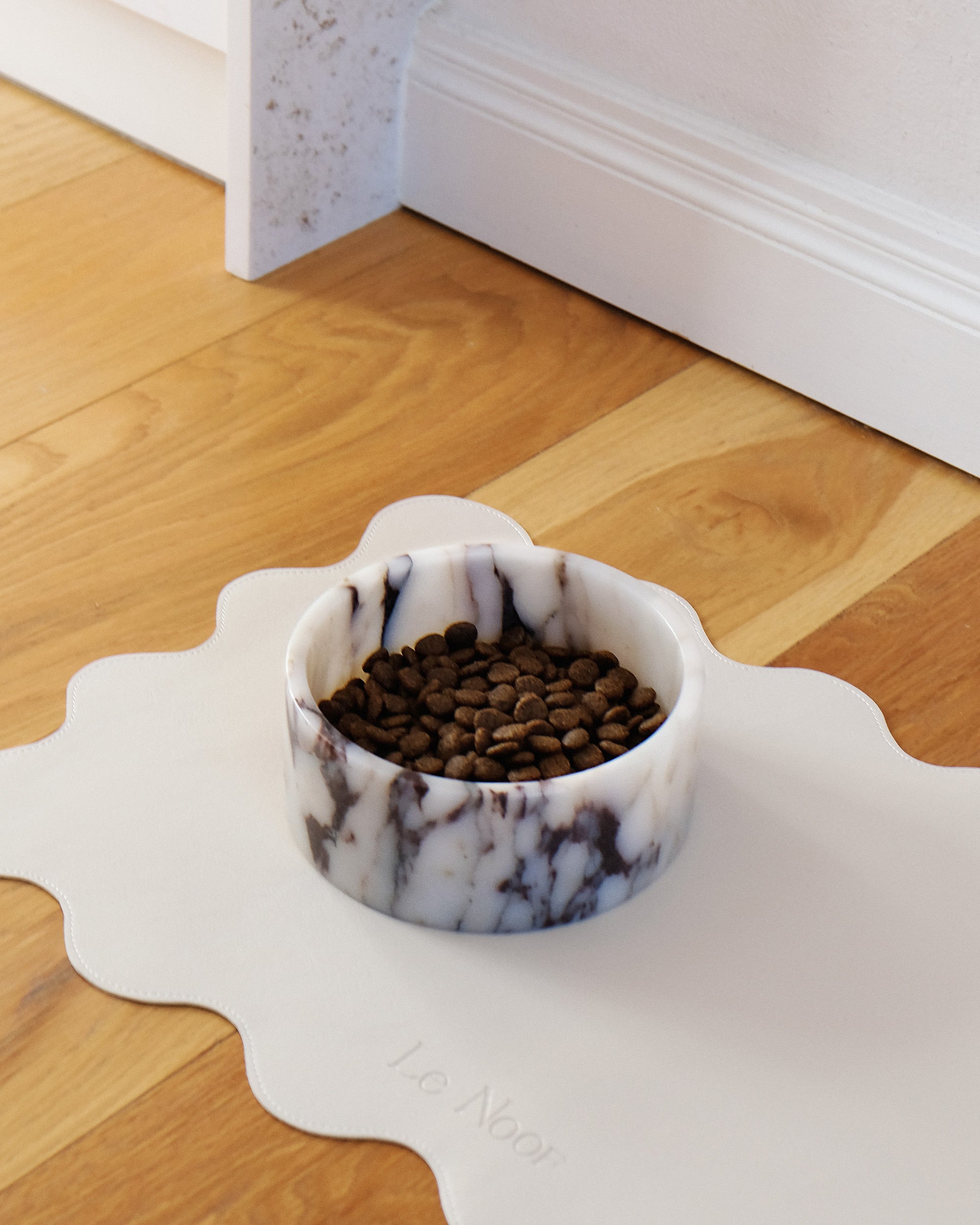 Each mat features a reversible design with two sophisticated tones in one. Flip between beige and green or black and brown to suit your space or switch things up. The clean wavy silhouette fits beautifully under any Le Noof bowl style—from ceramic slow feeders to polished stone or marble.