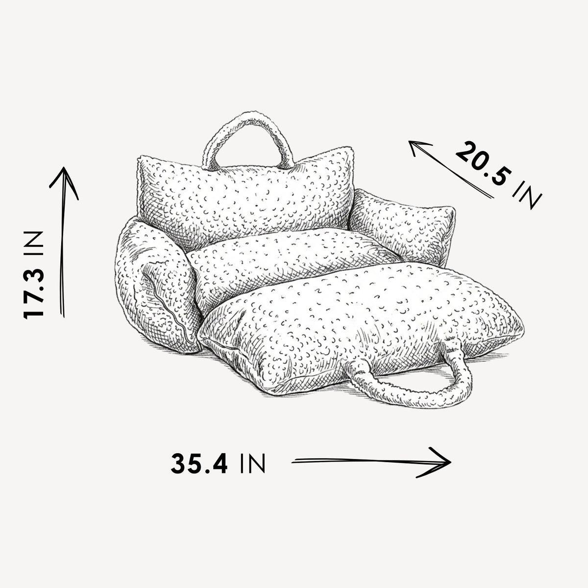 A soft, convertible travel bed that looks and feels like a sheepskin dog bed — made from plush teddy fabric for comfort on the go. Opens flat for use beyond the car and includes safety straps, side pockets, and a non-slip bottom. Removable, machine-washable covers make it easy to clean between trips. Beds arrive rolled and vacuum-packed — please allow up to 72 hours to fully expand to their intended shape.